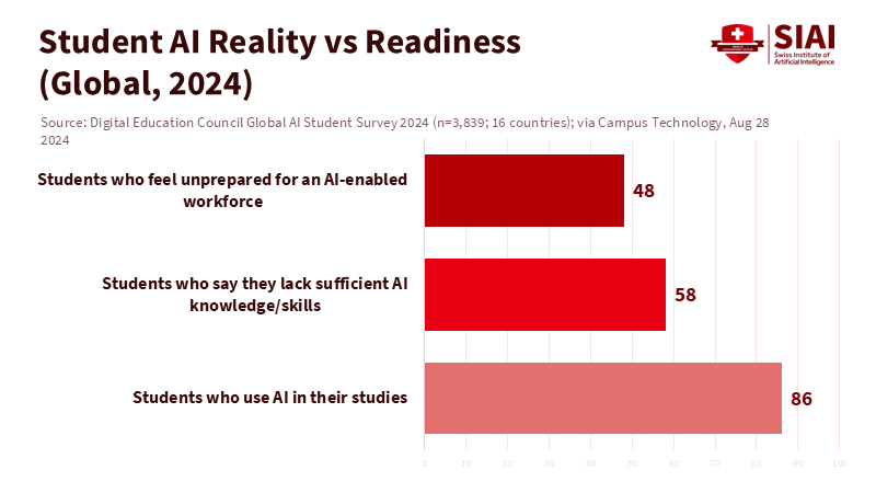 이러한 방향은 학생들의 요구와도 일치한다. 2024년 16개국 대학생 3,839명을 대상으로 한 조사에서, 86%가 이미 학업에 AI를 활용하고 있다고 답했지만 58%는 AI에 대한 이해가 부족하다고 느꼈고, 48%는 AI 중심의 직업 환경에 대비되지 않았다고 했다. 이 격차가 바로 새로운 글쓰기 교육이 다뤄야 할 과제다. 검증, 공개, 맥락에 맞는 표현을 가르치고 이를 평가하는 체계가 필요하다.