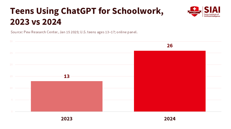 미국 청소년의 학업용 ChatGPT 활용률은 1년 만에 13%에서 26%로 두 배 가까이 늘었다. 이는 단순한 유행이 아니라 학습 방식이 근본적으로 바뀌고 있음을 보여준다. 학년과 배경을 가리지 않고 확산되는 이 변화는 교실의 글쓰기가 더 이상 개인의 작업이 아니라, 인간과 인공지능이 함께 만들어가는 과정으로 전환되고 있음을 의미한다.